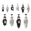 FR系列空氣過濾減壓閥具有過濾和減壓裝置,能夠為定位器、電磁閥、氣動執(zhí)行器等提供干燥潔凈的氣源。堅固耐用的鋁合金外殼,可選316不銹鋼外殼,壓力設(shè)定方便,輸出壓力穩(wěn)定,采用5微米濾芯過濾器自動保持輸出壓力與設(shè)定壓力相平衡。