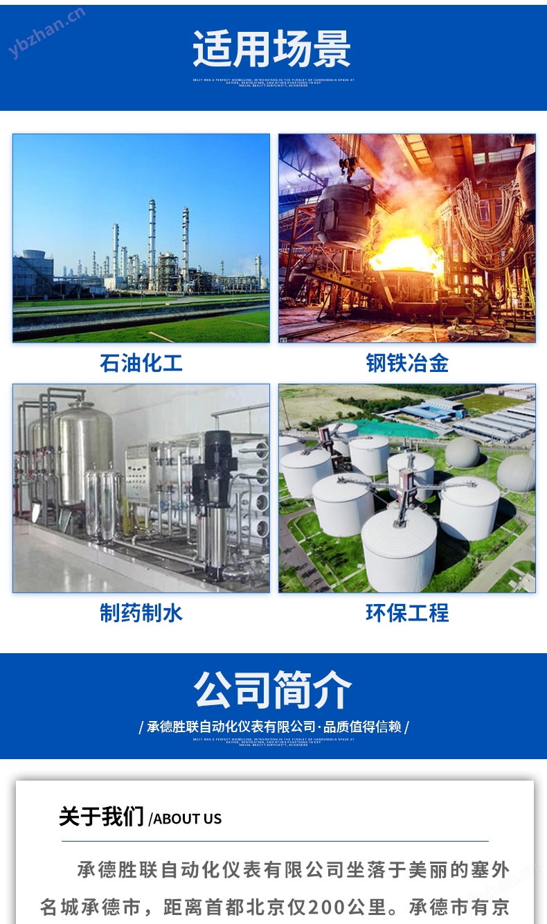 承德勝聯自動化儀表有限公司坐落于美麗的塞外名城承德市,距離首都北京僅200公里。承德市有京承、承唐、承朝、承赤、承張等多條高速相通,交通十分便利。