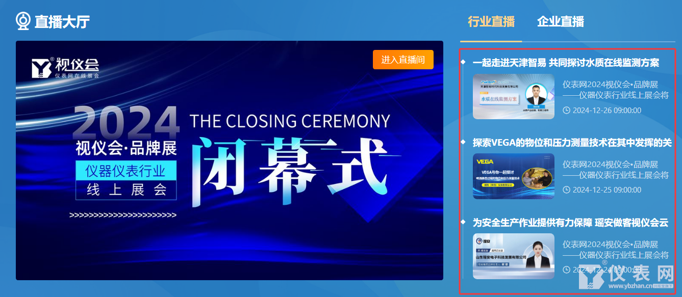 儀表網 在線展會】 注意啦!儀表網2025視儀會•品牌展(第六屆)將于12月1日-12月5日在線上舉辦。屆時,儀表網將同期舉辦品牌評選、云訪談等系列活動,助您打通“云”渠道、發展“云”客戶。目前2025視儀會·品牌展【云訪談】正在報名中,名額有限,速來占位!