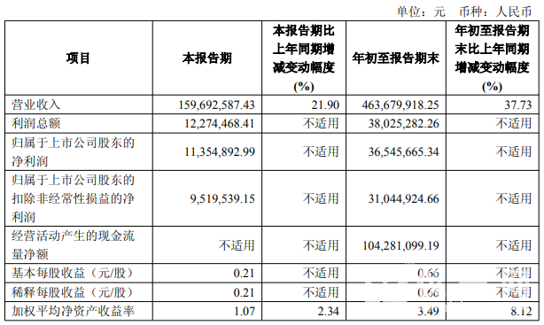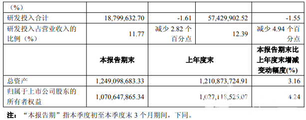 截至三季度末,公司總資產12.49億元,較上年度末增長3.2%;歸母凈資產為10.71億元,較上年度末增長4.2%。