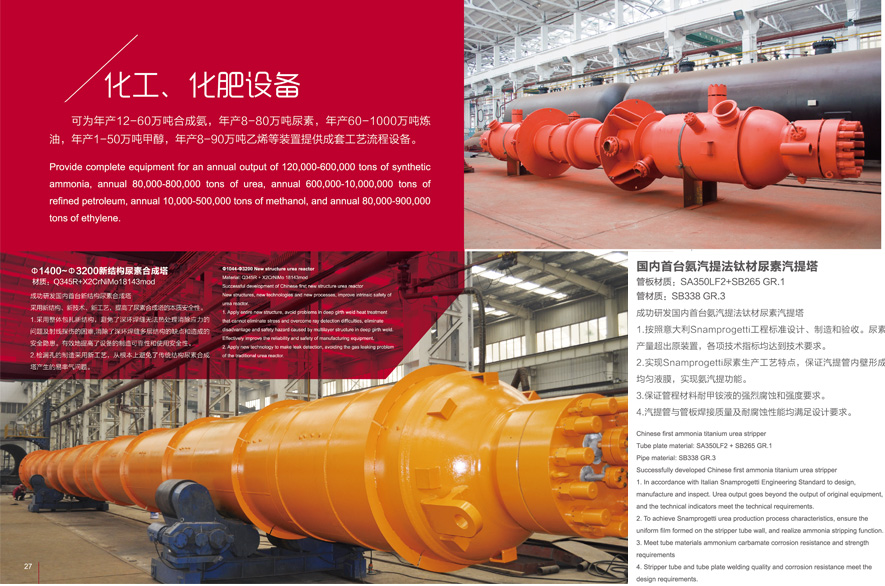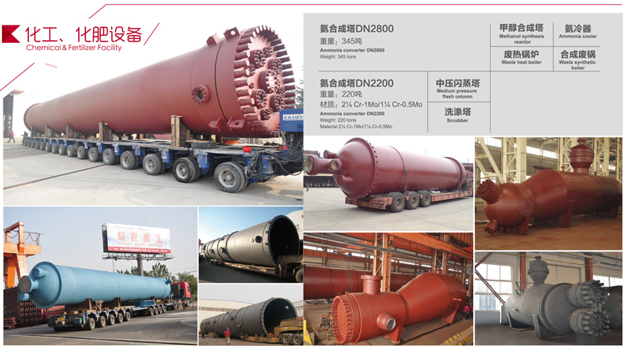 山東云蟻重工有限公司可為年產12-80萬噸合成氨,年產8-120萬噸尿素,年產1-50萬噸甲醇,為氯堿、泡花堿、 合成橡膠、PVC、聚乙烯、芳烴及乙二醇等裝置提供成套工藝流程設備。