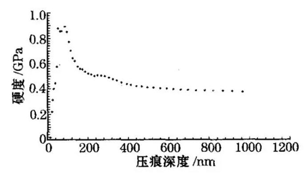 材料硬度H 依賴于被測(cè)材料的深度H,有壓人壓頭之稱,并且隨著壓人深度的減小而增大,因此具有尺度效應(yīng),適用于具有塑性的晶體材料。