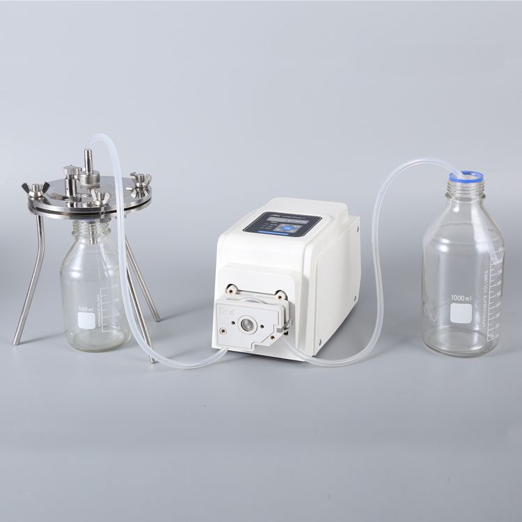 而過濾量如果超過10升,需要進行小試、中試或生產使用時,瓶頂過濾器的方式會因為過濾量太小,需要頻繁更換濾膜,大幅影響工作效率,一般需要使用平板過濾器。其名稱來源于其形狀為扁平、板狀的樣式,濾器上學可以分離,中間可以鋪放過濾膜。,以PF2150平板過濾系統為例,其在結構上由一臺不銹鋼平板過濾器、一臺將液體輸送入過濾器內的蠕動泵和泵管組成。使用時,將過濾膜裝入平板過濾器內,泵管的一端連接在過濾器的進液口內,另一端置入待過濾的液體內。打開蠕動泵后,蠕動泵的電機驅動軸承擠壓泵管內的液體,將其輸送至過濾器內,并通過持續的推力推動液體通過濾膜。濾液通過濾膜后,從過濾器下方的排液接口排出,流入預先準備好的容器內保存。從上述構造和原理是我們可以看出,平板過濾系統在開始過濾后,中間無需人工介入操作,蠕動泵可以自行抽取液體進行連續不斷地過濾。