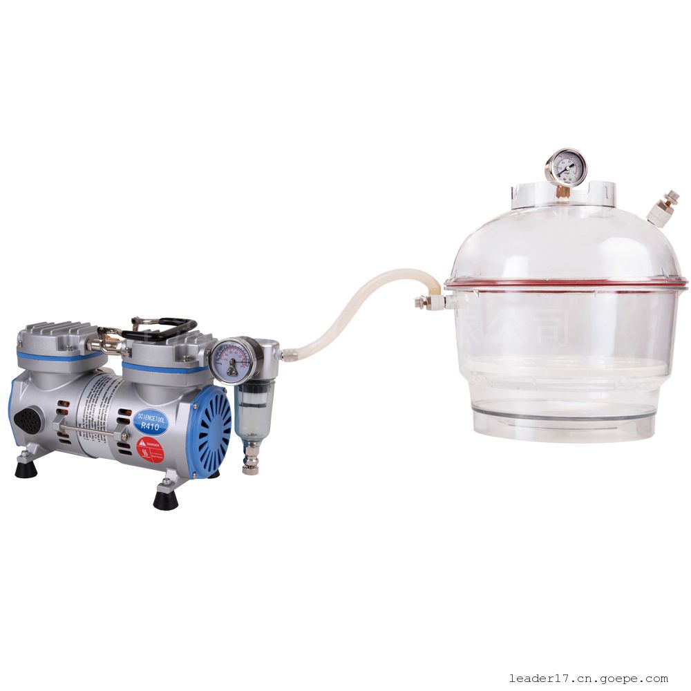 ●真空泵:本型號標配的是無油真空泵,真空度可達30mbar,抽速為20L/Min,可以在較短的時間內將干燥器抽到較為理想的真空度。無油真空泵插電就能使用,不需要連接水源或加入泵油,日常使用中業務進行換油等保養維護,使用時不會有油污污染產生,是一款使用體驗較好的真空泵。除了搭配無油真空泵外,有些應用如真空脫泡,對真空度要求較高,可以選擇搭配旋片式油泵的型號如T242DV,真空度低至0.1mbar,能夠抽走更多的空氣,達到更好的真空度。