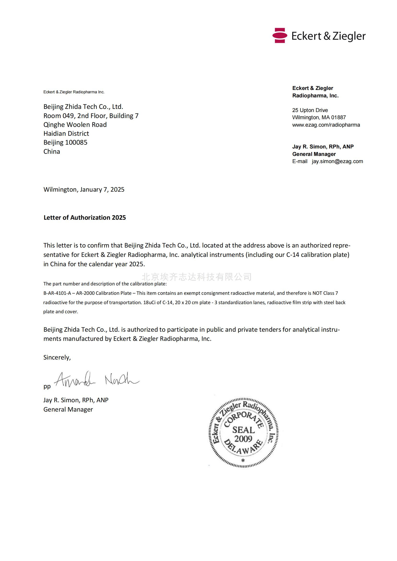 埃齊志達科技是美國、Eckert & Ziegler Radiopharma, Inc(TLC) 、Gentech Industries Inc. Data Spectrum Corporation (CT、MR模體)、德國ABX advanced biochemical compounds - Biomedizinische Forschungschemikalien GmbH(PET藥物合成試劑和氧水)、ergosana GmbH(運動踏車)CAPINTEC,INC(核儀器、防護)在中國的總代理商,配套儀器、設(shè)備齊全。同時公司具備自主研發(fā)能力,擁有技術(shù)工程師及售后服務(wù)團隊十三名(博士一名),服務(wù)客戶遍及全國.