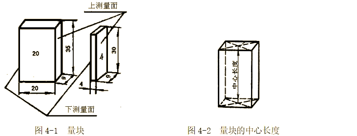 量塊通常采用耐磨性、硬度高且不易變形的軸承鋼制成,呈現為矩形截面的長方體形態,如圖4-1所示。其上、下兩面為測量面,經過精密研磨與拋光處理,光滑且平行。而量塊的截面尺寸則根據其基本尺寸的不同而有所差異:當基本尺寸位于0.5至10mm范圍內時,其截面尺寸為30mm×9mm;若基本尺寸超過10至1000mm,則截面尺寸調整為35mm×9mm。